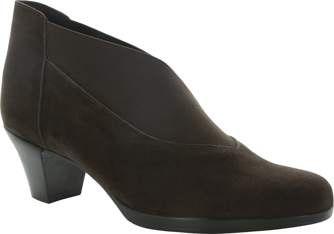 Englin’s Fine Footwear presents the women’s ‘Francee’ from Munro. Beautiful suede bootie with wide gore, envelope fold, V-neck topline. Your legs will appear longer with the cut of this lovely bootie. An easy on and easy off, comfortable and this bootie will pair well with your fall wardrobe.