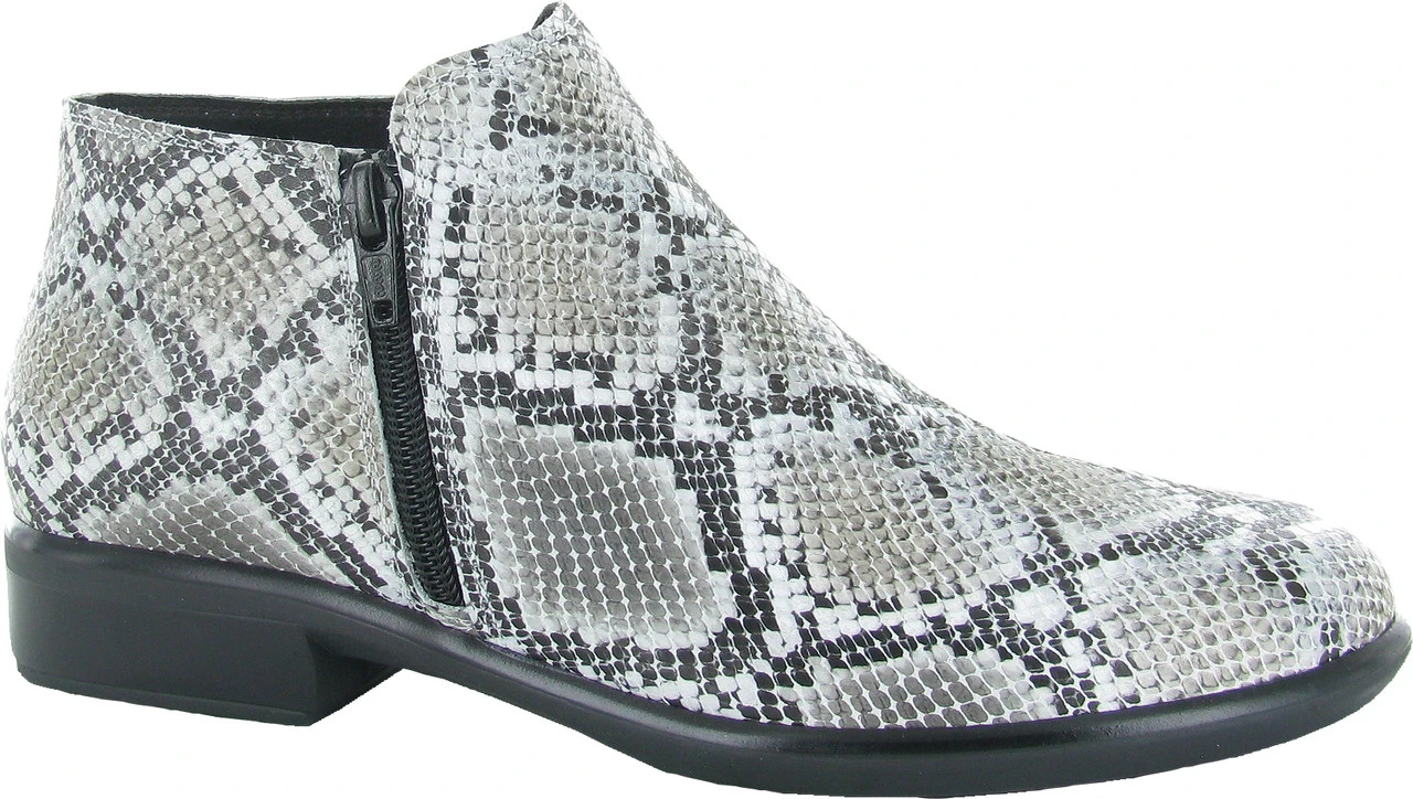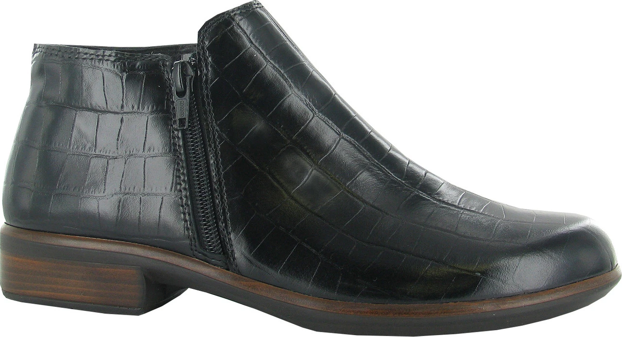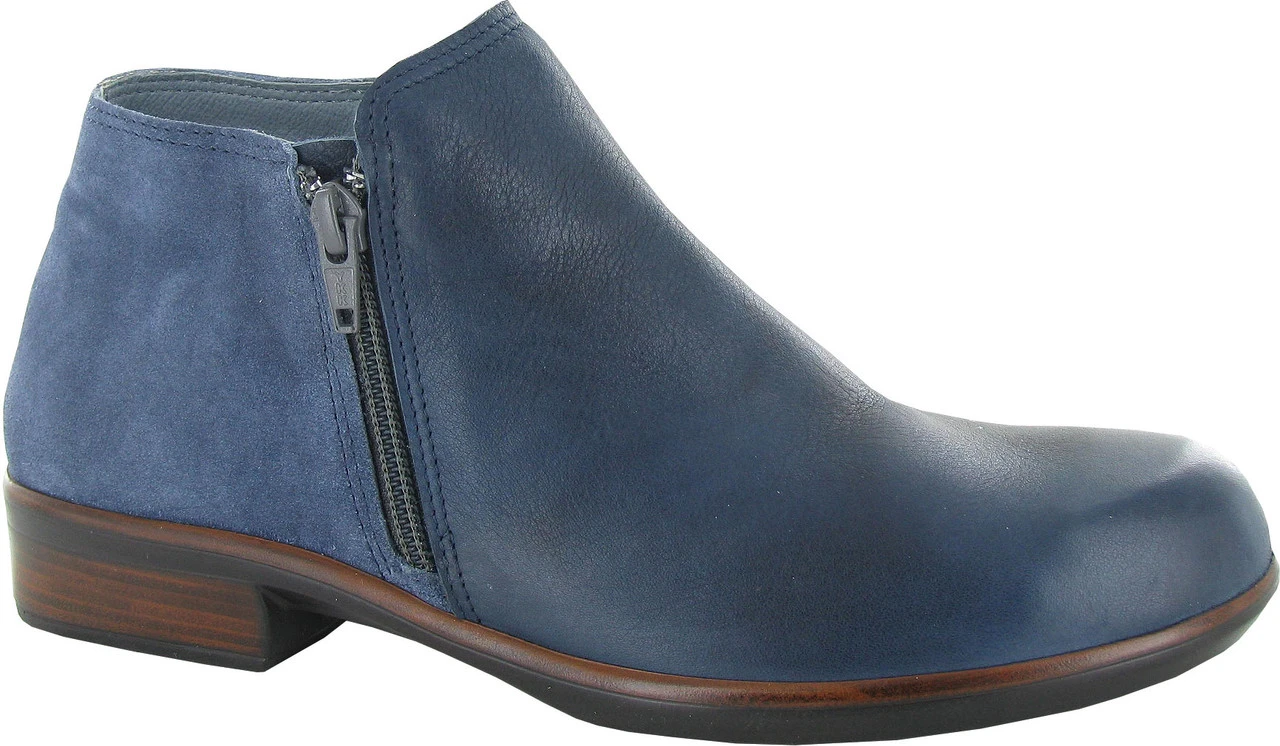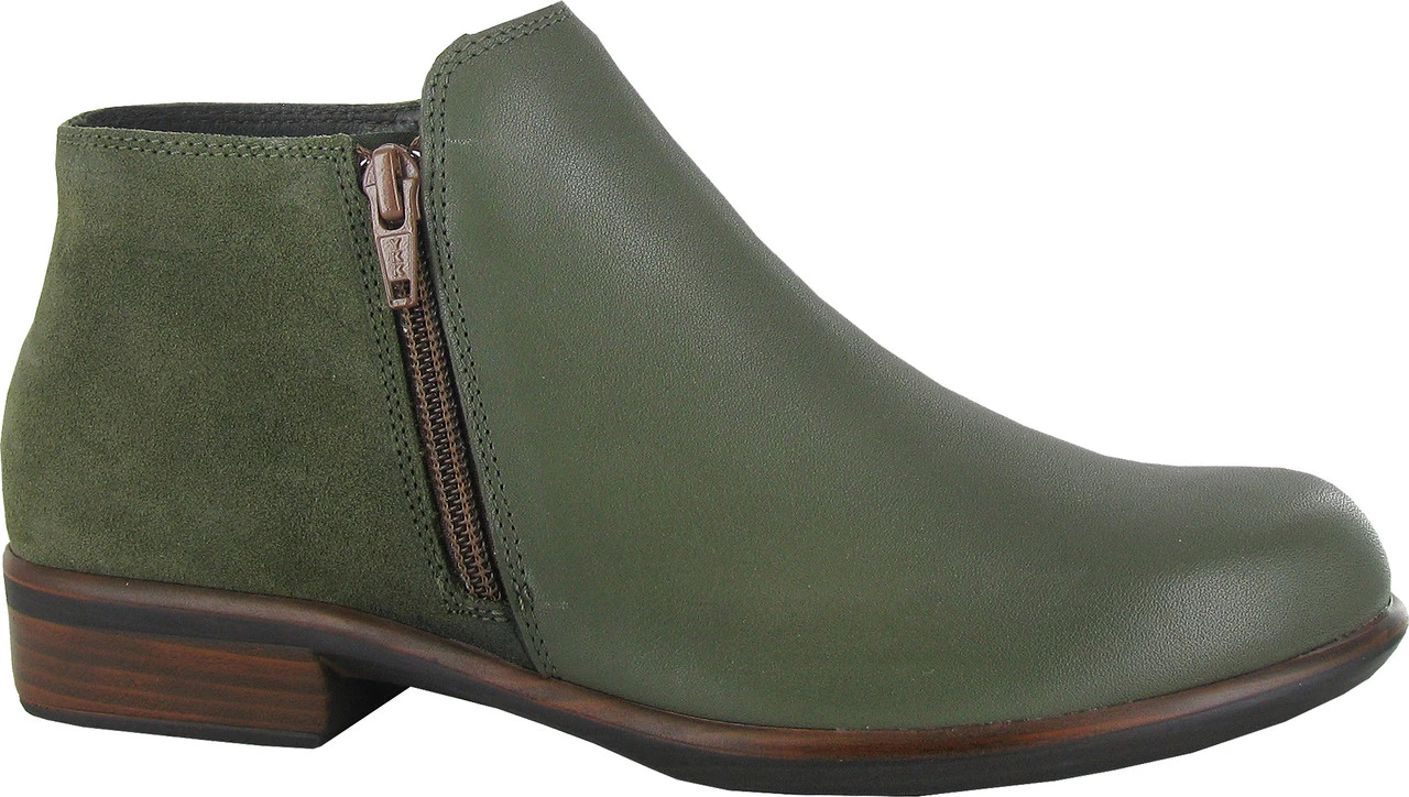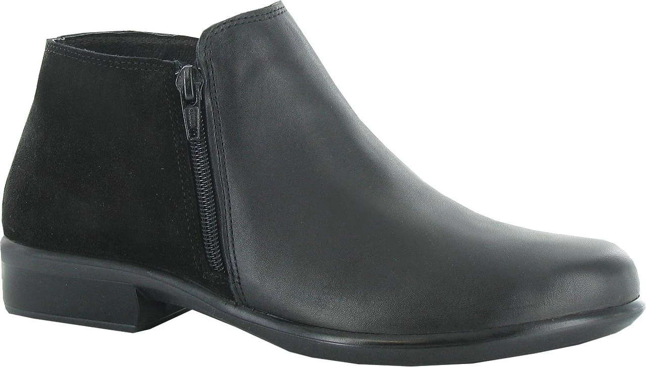 Englin’s Fine Footwear presents the women’s ‘Helm’ from Naot. The Naot Helm is the perfect bootie with double zippers for accessibility. The Helm has a padded heel cup & instep for ultimate comfort. This boot has padded technical lining for comfort, warmth & moisture absorption. Naot’s removable, anatomic cork & latex footbed is wrapped in microfiber & leather and molds to the shape of the foot with wear. The Aura Collection features a 1.5″ polyurethane sole with a metal shank which is extremely lightweight, durable & abrasive to prevent slipping. This collection uses a hand-sewn stroble construction making it strong and extremely flexible.