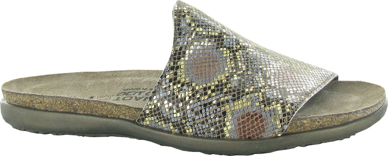 Englin’s Fine Footwear presents the women’s ‘Skylar’ from Naot. The Naot Skylar is the perfect everyday slip on, designed with beautiful bold colors. Naot’s anatomic cork & latex footbed is wrapped in a pampering suede and molds to the shape of the foot with wear. The Flat Elegant Collection features a .75″ TPR sole.
