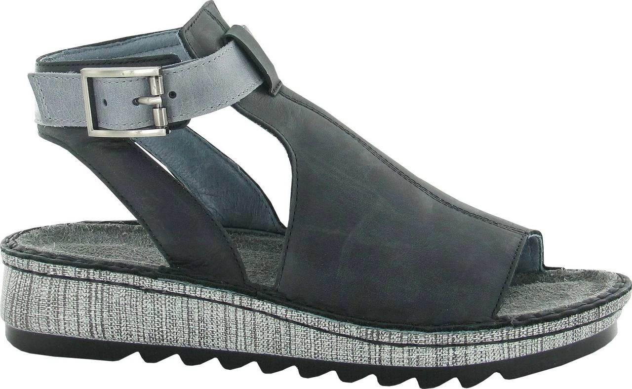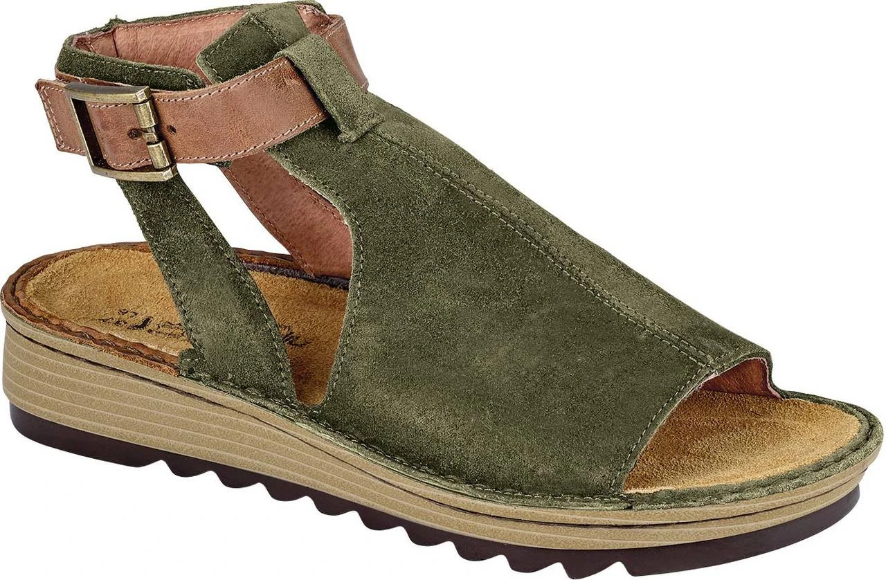 Englin’s Fine Footwear presents the women’s ‘Verbena’ from Naot. The Verbena is a beautiful transitional sandal with a full padded upper. The contrasting ankle strap features a faux buckle hook & loop closure for accessibility & adjustability. Naot’s removable, anatomic cork & latex footbed is wrapped in pampering suede and molds to the shape of the foot with wear. The Bloom Collection features a 1.75″ polyurethane sole which is extremely lightweight, and durable.