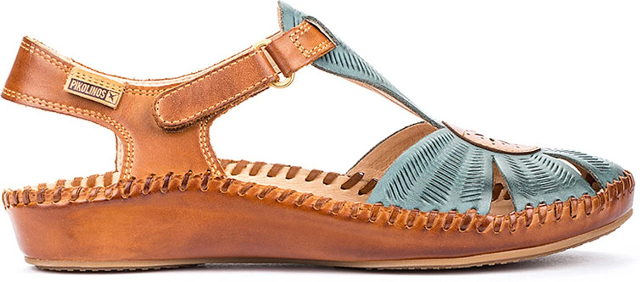 Englin’s Fine Footwear presents the women’s ‘P. Vallarta 655-0575’ from Pikolinos. This comfortable and flexible design is a staple of the Pikolinos collection. Bright and poppy colors with plenty of stylish cutouts make this sandal a perfect choice for summer.