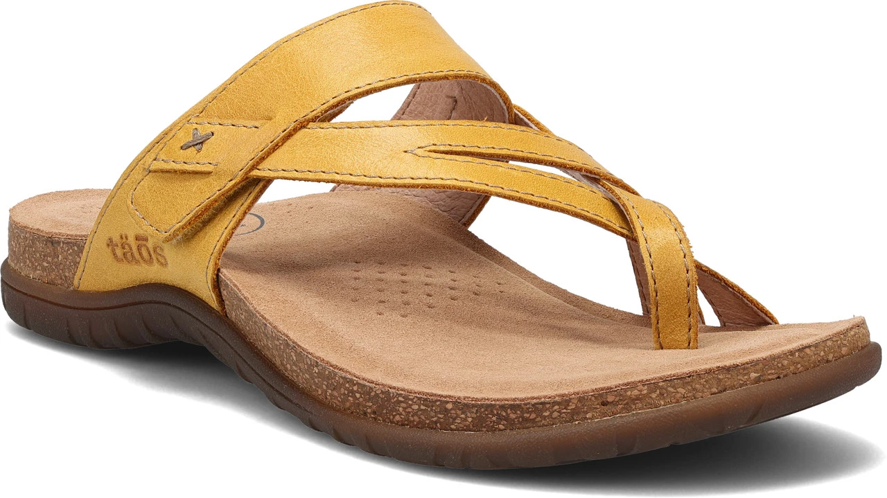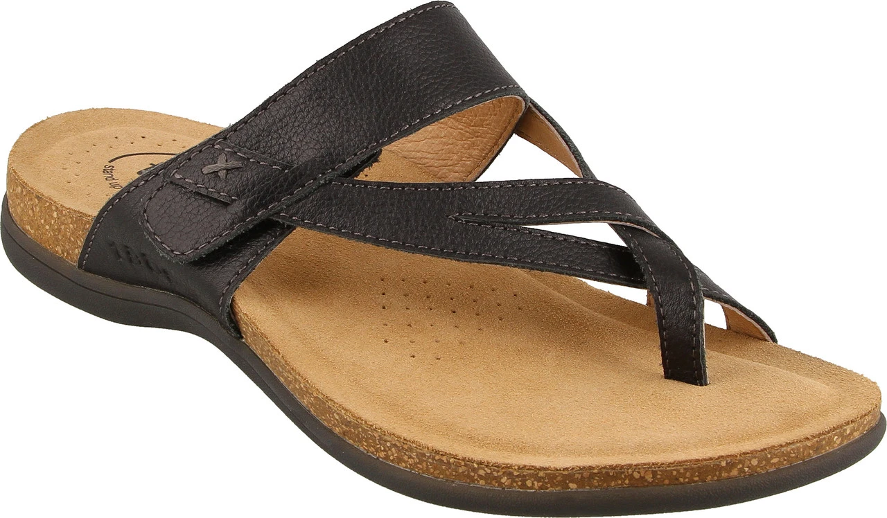 Englin’s Fine Footwear presents the women’s ‘Perfect’ from Taos. This truly is the Perfect sandal for any time any where! Premium leather toe loop thong sandal with strappy upper design and adjustable hook and loop strap closure. Lightweight cork-latex midsoles are topped with soft padding and lined in luxurious suede, offering exceptional arch and metatarsal support.